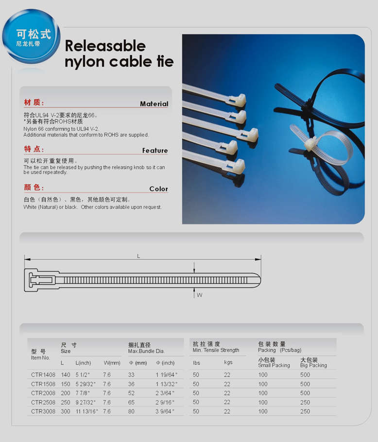 • 產(chǎn)品名稱:尼龍?jiān)鷰В櫭家鉃槔υ鷸|西的帶子,設(shè)計(jì)有止退功能(活扣式除外),只能越扎越緊,也有可拆卸的扎線帶(活扣)。
